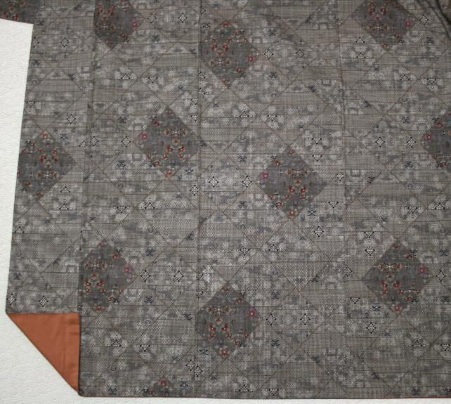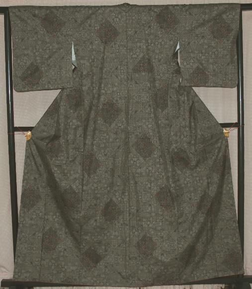 茶泥染め七マルキかすり、変わり菱文様の本場大島紬着物です