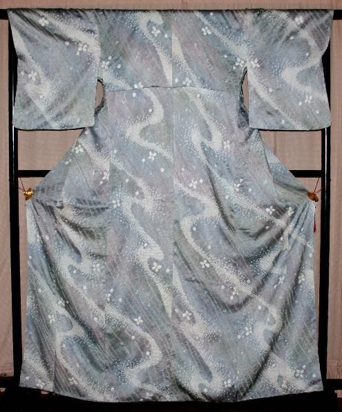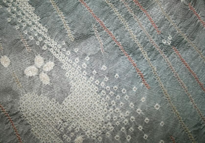 フレンチグレイ絞り小紋着物・肩裄が長め(お勧め品です)