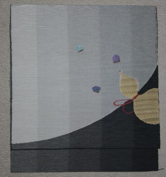 お太鼓と前部分で半円に織分け、ひょうたん文様の