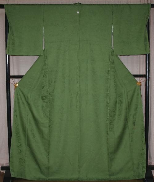 どっしりした紋意匠生地。渋めのグラスグリーンの作家物の色無地着物です