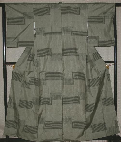 利休色九マルキかすり抽象文様希少な本場大島紬着物(お買い得です)
