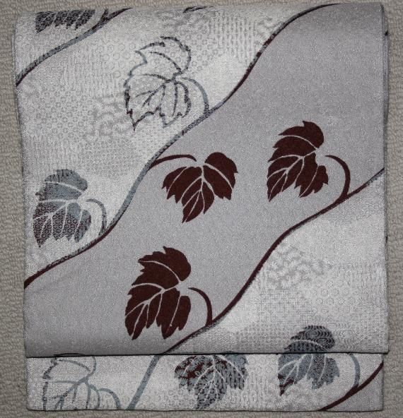 未使用の牡丹鼠色唐草文様袋帯(お勧め品です)