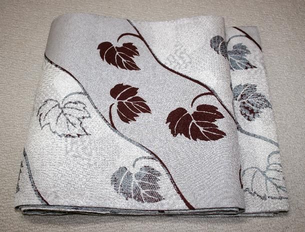 牡丹鼠色、道長模様に唐草柄の全通(端から端まで通し模様)の