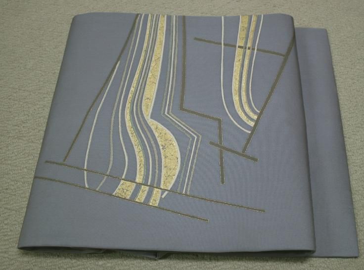 渋薄藤鼠塩瀬金彩加工染め名古屋帯(お勧め品です)