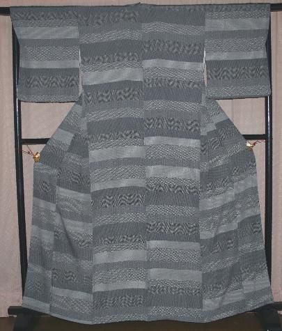鉄御納戸色江戸小紋ずくし横段模様小紋着物(肩裄が長めです)