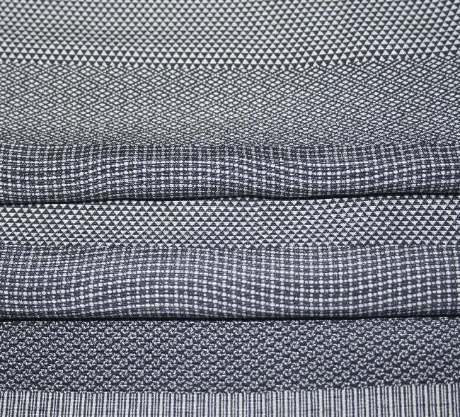 どっしりした駒無地生地。鉄御納戸色地に七宝、鱗、小菱などの