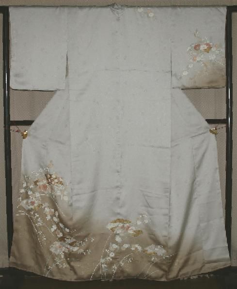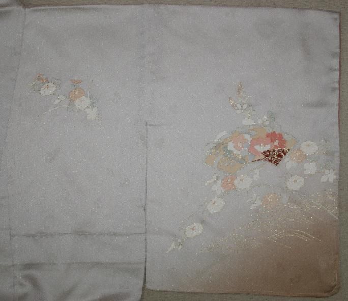 オイスターホワイト裾ぼかし、草花に扇面地紙文様の気品ある
