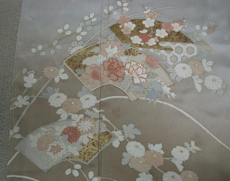 未使用のオイスターホワイト扇面文様訪問着(お勧め品です)