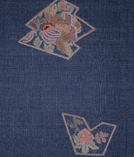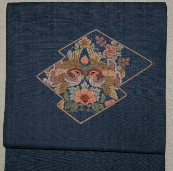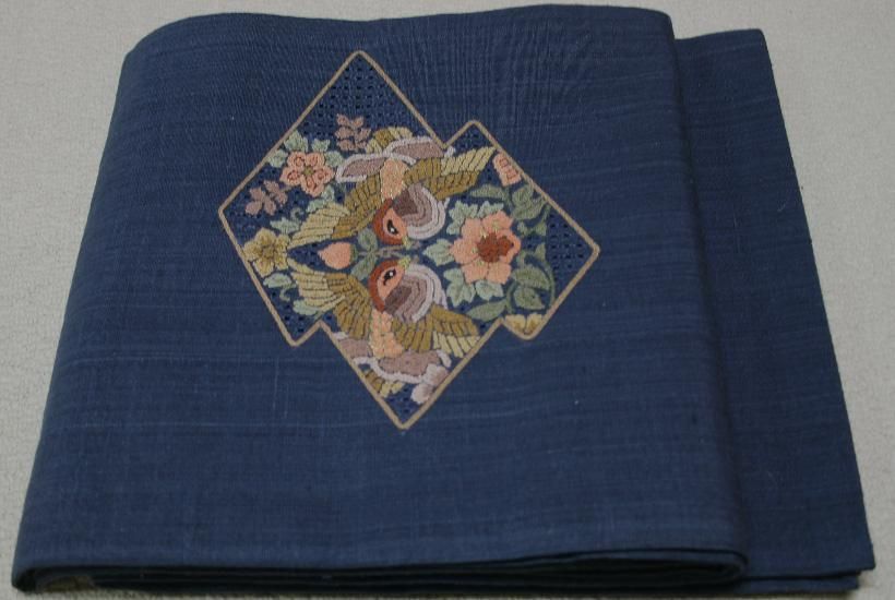 未使用のミッドナイトブルーさがら刺繍名古屋帯