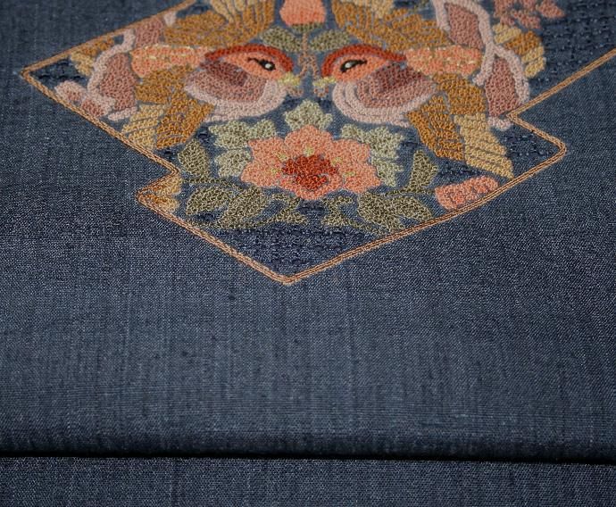 渋めのミッドナイトブルー、ざっくりとしながらしなやかな地風