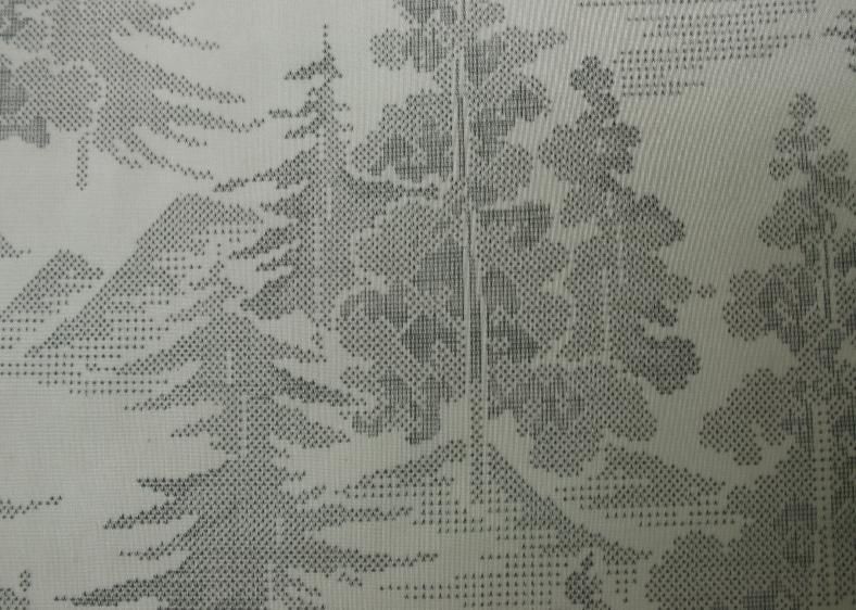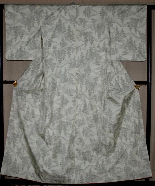 薄目のアイボリー色、爽やかな山並み模様の本場白大島紬着物です