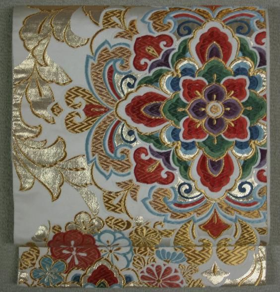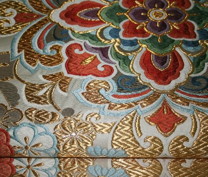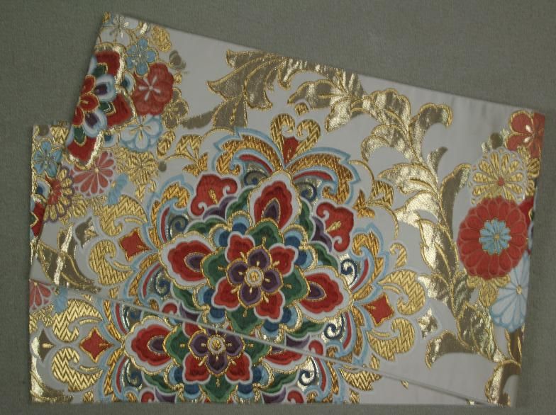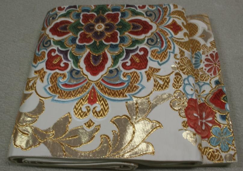 ミルキーホワイト、豪華で印象的な華紋文様袋帯です