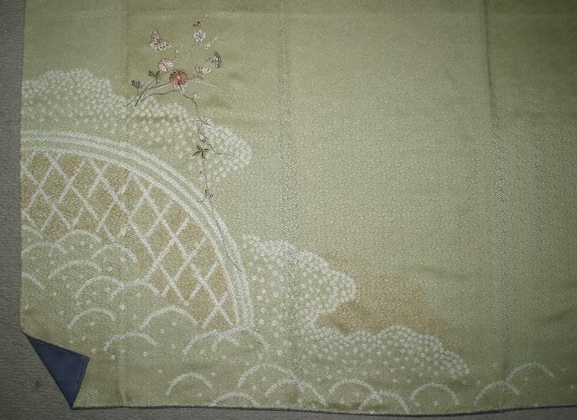 渋めの薄若菜色紋綸子生地。