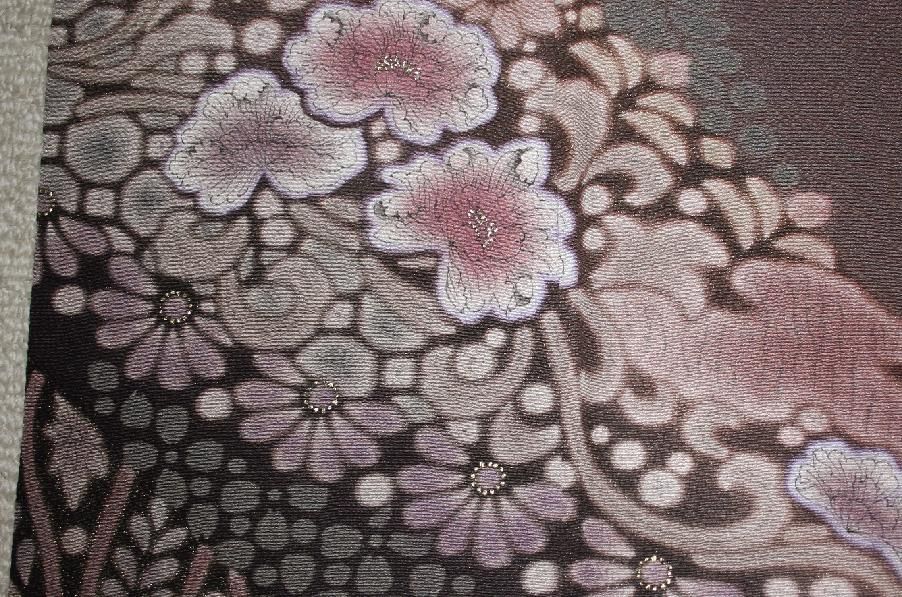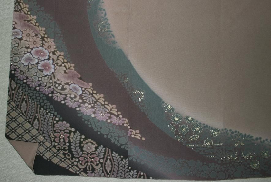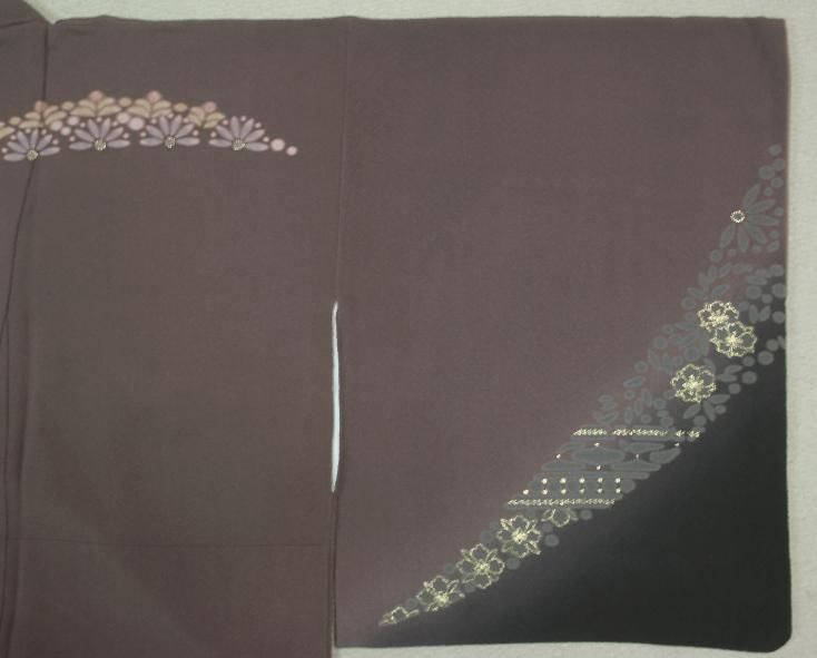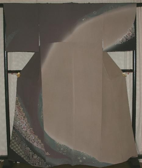 葡萄鼠色大胆な染め分け訪問着(お勧め品です)
