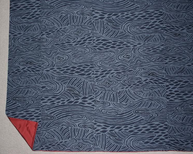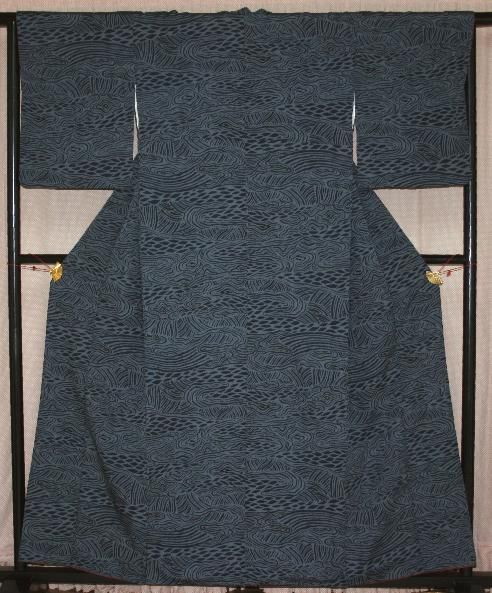 渋ミッドナイトブルー抽象文様小紋着物(お買い得です)