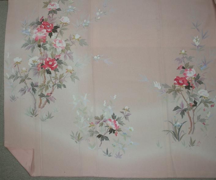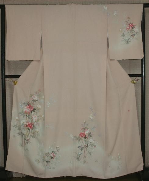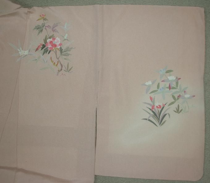 爽やかなシェルピンク、枝花模様の可愛い加賀友禅訪問着です