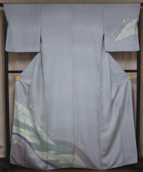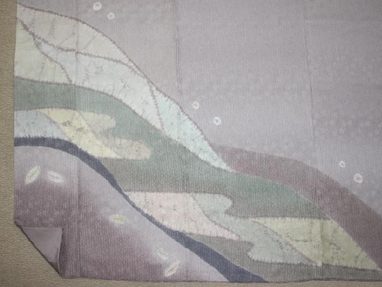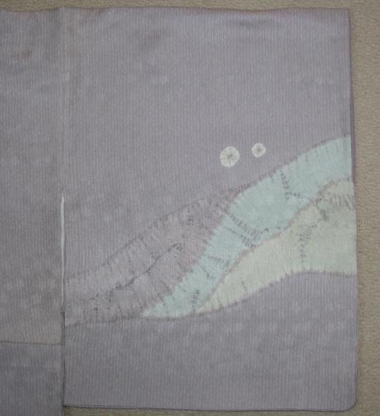 暁鼠色絞り付け下げ着物(肩裄が長め)